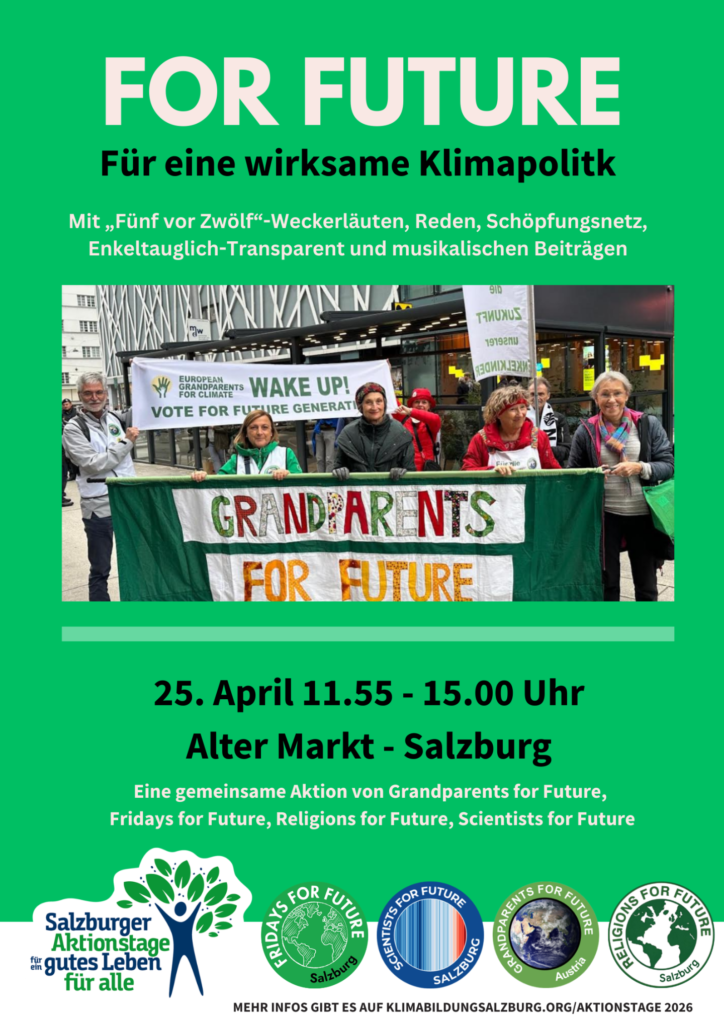 Großeltern und ältere Menschen. Uns liegt die gute Zukunft besonders auch der nachfolgenden Generationen am Herzen. Daher setzen wir uns für Klimaschutz ein.
